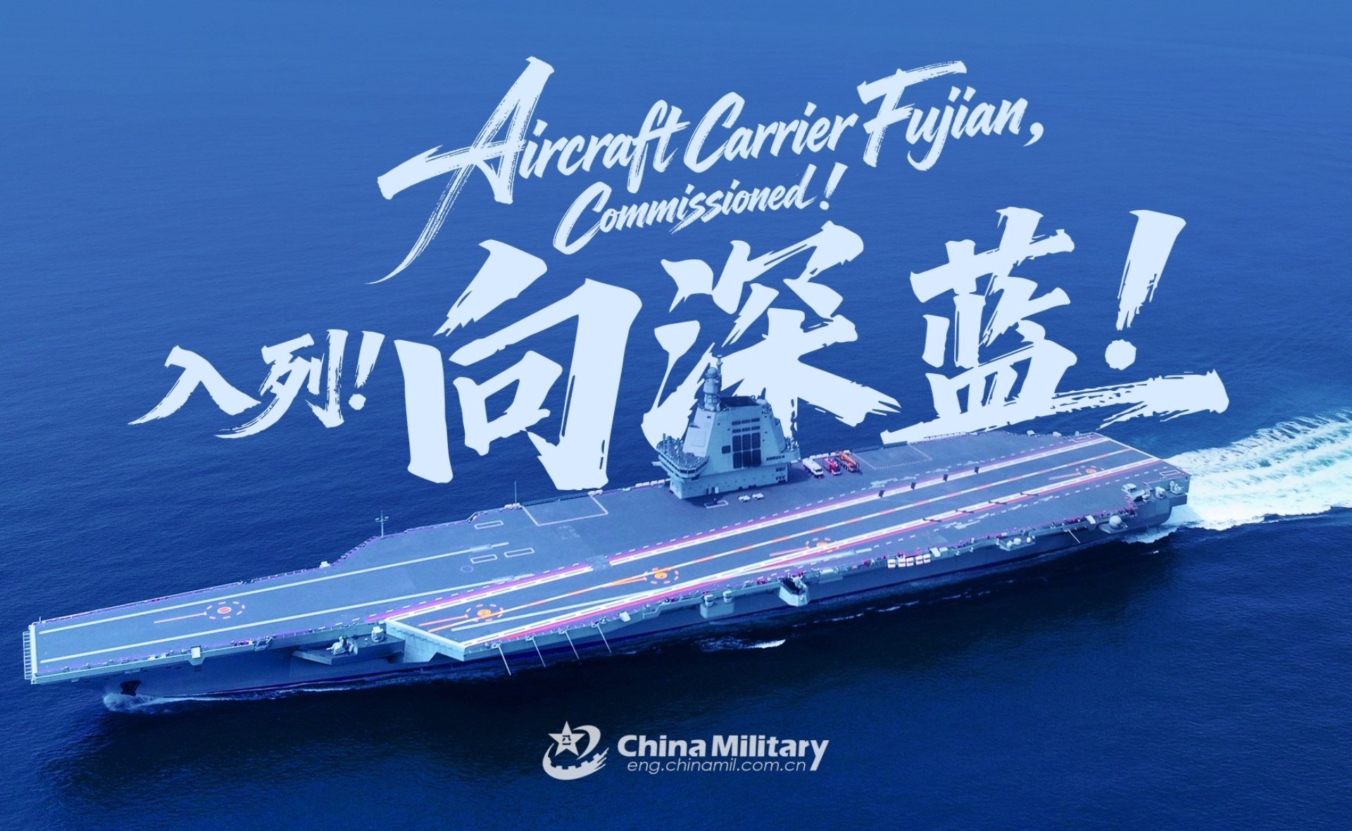 Ο πρόεδρος της Κίνας, Σι Τζινπίνγκ, παρέστη την Τετάρτη στην τελετή έναρξης λειτουργίας και επίδειξης σημαίας του «Fujian», του πρώτου αεροπλανοφόρου της χώρας εξοπλισμένου με ηλεκτρομαγνητικούς καταπέλτες.
