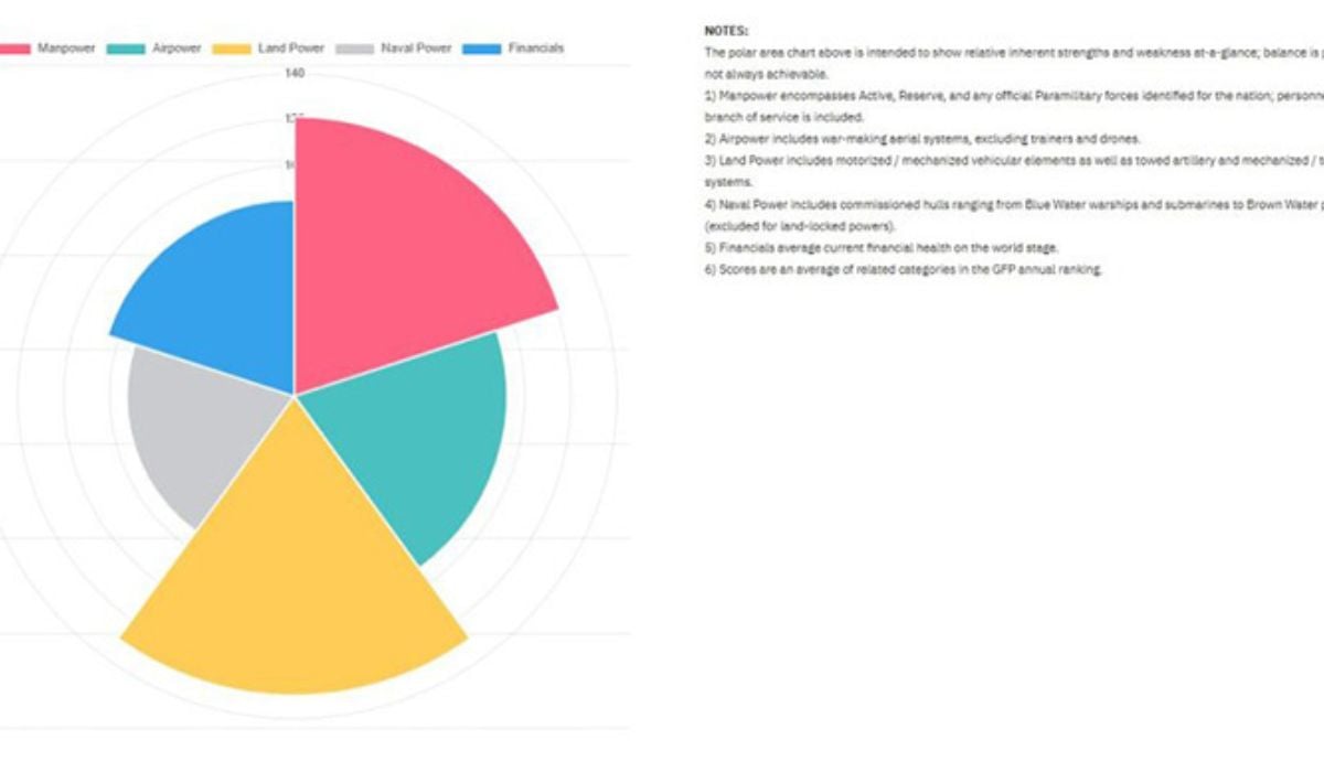 Για τη δημιουργία της κατάταξης του 2025, ο ιστότοπος GlobalFirepower.com εξέτασε 145 χώρες και χρησιμοποίησε περισσότερους από 60 διαφορετικούς παράγοντες για να υπολογίσει τη βαθμολογία PowerIndex (PwrIndx) κάθε έθνους.
