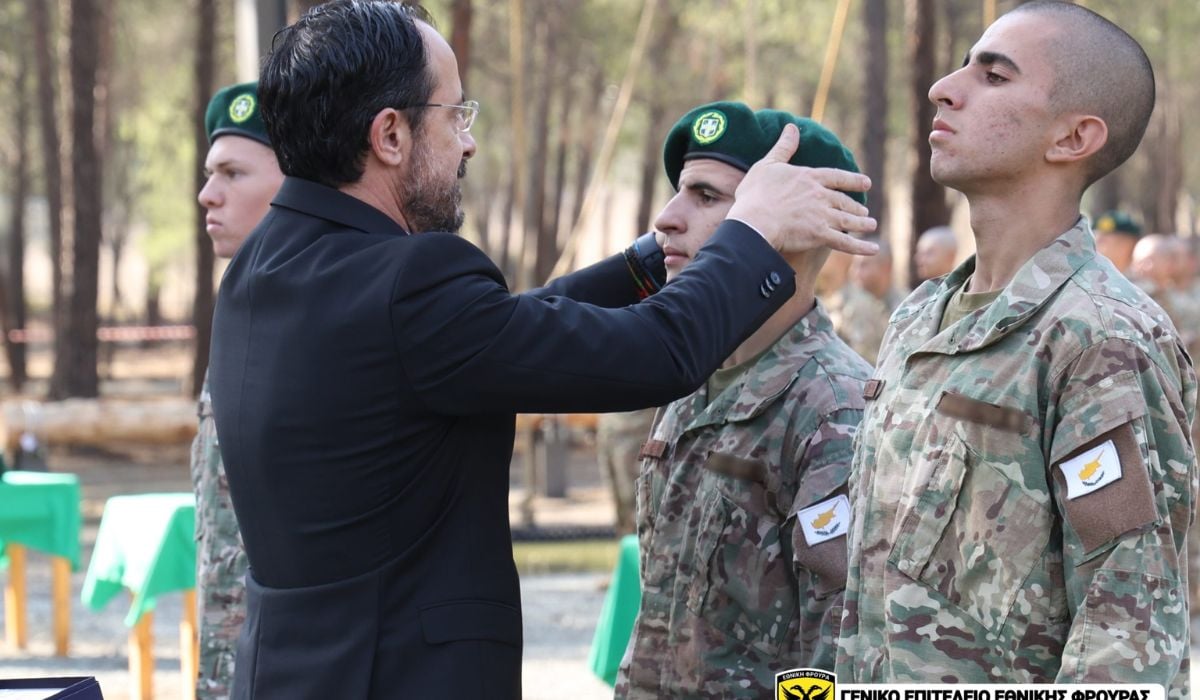 Ο Πρόεδρος Χριστοδουλίδης είχε την τιμή να απονείμει ο ίδιος τους πράσινους μπερέδες στους πρωτεύσαντες νέους καταδρομείς.