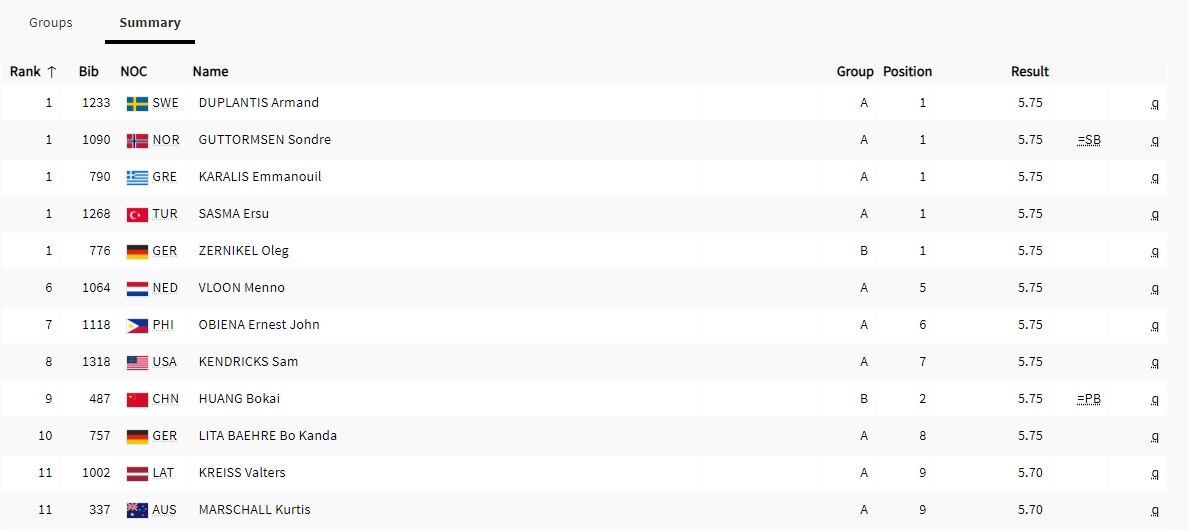 Το όριο πρόκρισης στον τελικό ήταν αρχικά τα 5μ.80, αλλά όταν έκλεισε η 12άδα μπήκαν σε αυτήν και αθλητές που είχαν μείνει στα 5μ.70.