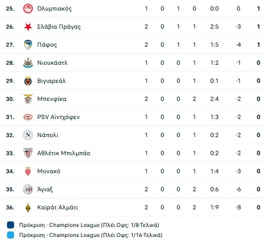 Θέσεις 1-8, απευθείας πρόκριση στους «16»