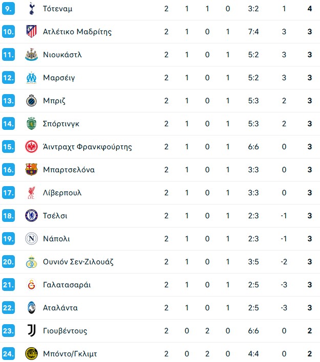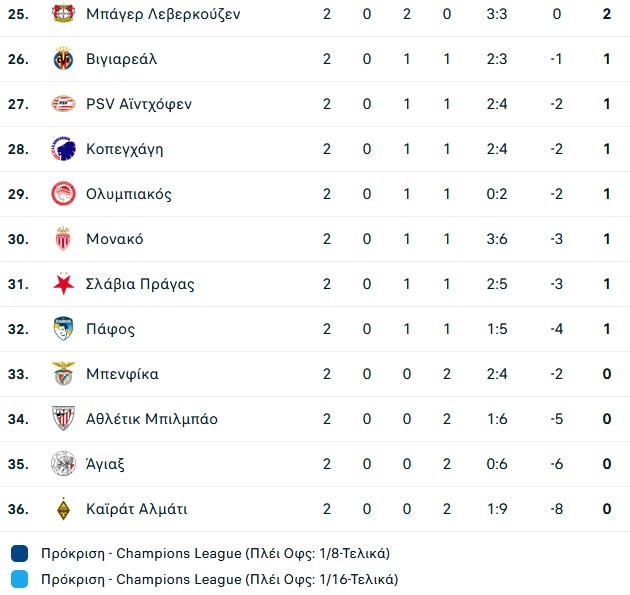 Θέσεις 1-8, απευθείας πρόκριση στους «16»