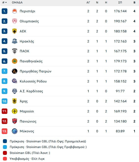Δεκάλεπτα: 18-21, 43-48, 68-67, 90-86