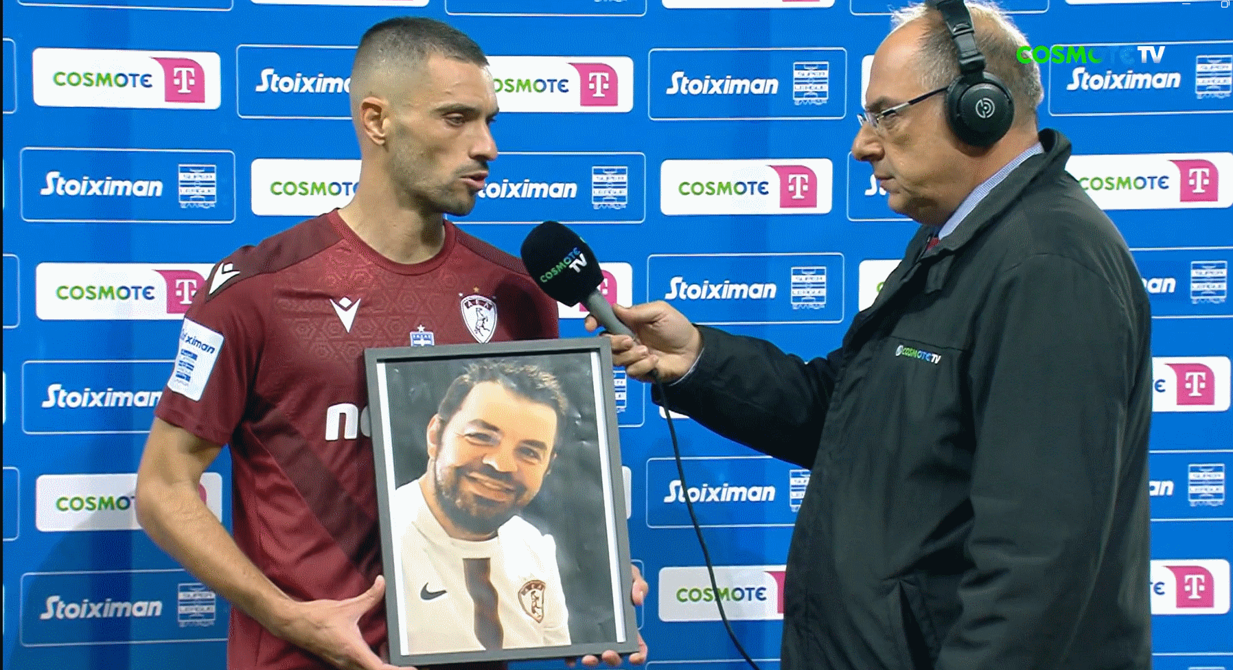 Μπορεί η ΑΕΛ να μην μπόρεσε να απειλήσει τον Ολυμπιακό στον αγώνα που άνοιξε την αυλαία της αγωνιστικής στη Superleague, αλλά ο αρχηγός της Λάρισας, ο 38χρονος Θανάσης Παπαγεωργίου σε μια χειρονομία που συγκίνησε μίλησε μέσα από την καρδιά του κρατώντας μια μεγάλη φωτογραφία του φίλου του Χρήσου.