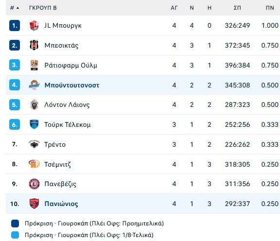 Εφιάλτης στην Ποντγκόριτσα για τον Πανιώνιο. H Μπουντούτσνοστ τον νίκησε… χαλαρά (91-63) αφήνοντάς τον στην τελευταία θέση της βαθμολογίας με μία μόλις νίκη (εντός με την Τσέμνιτζ στην παράταση 89-86) και τρείς πλέον ήττες.
