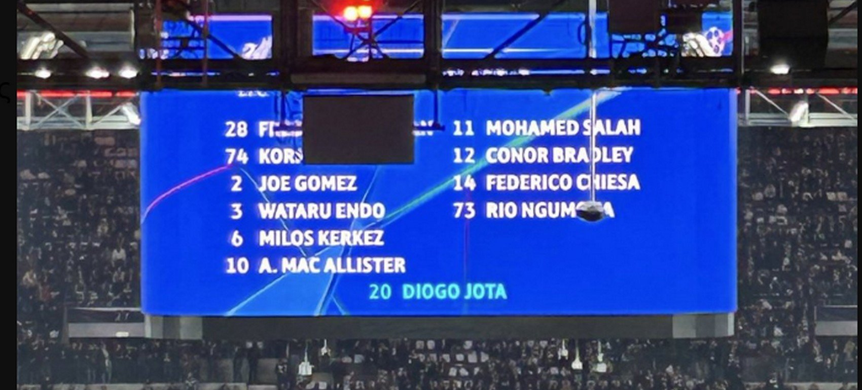 Nice touch from Eintracht Frankfurt who read out Diogo Jota’s name as part of the #LFC squad.