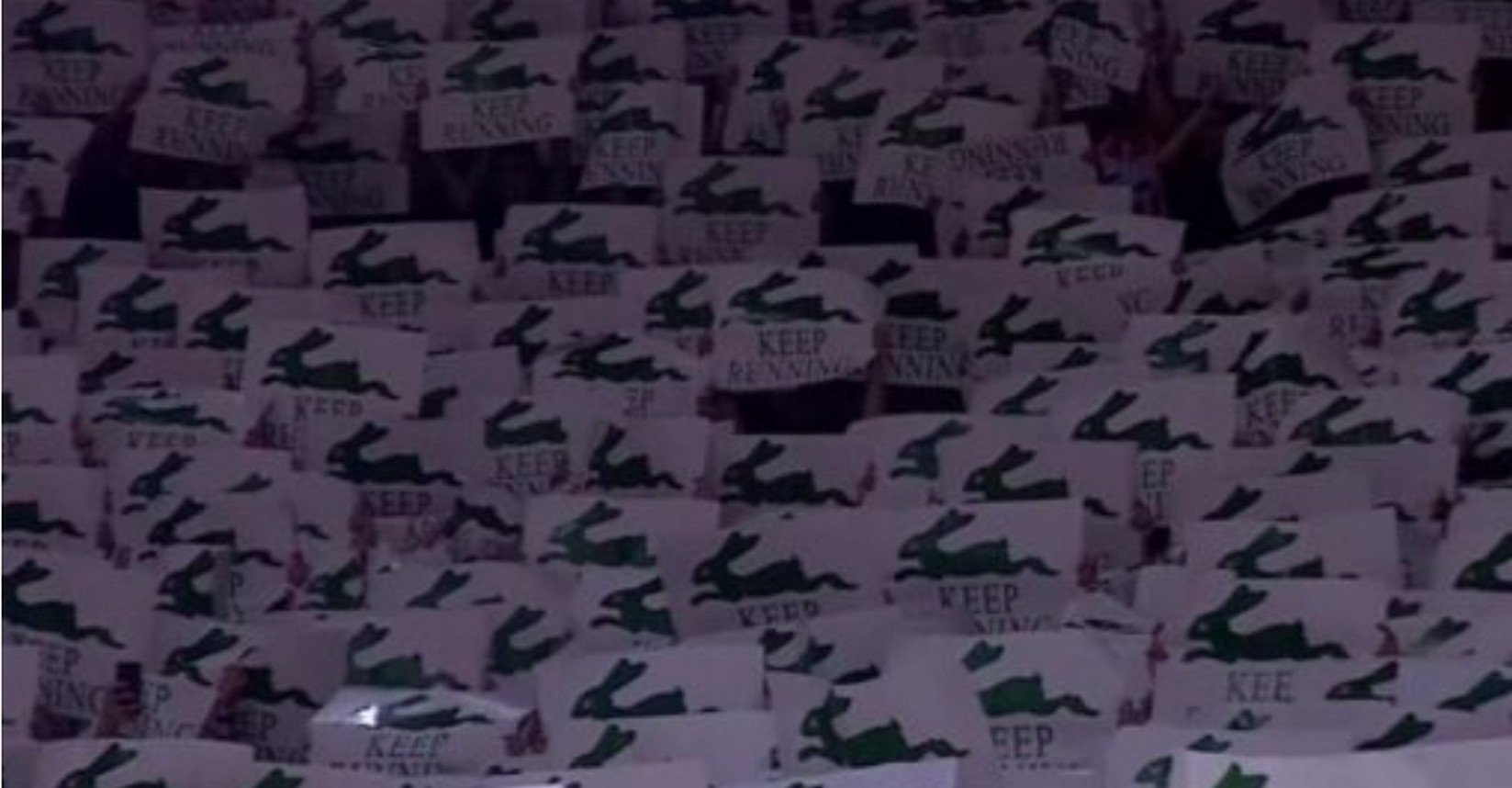 Οι οπαδοί του Ερυθρού Αστέρα υποδέχτηκαν την ομάδα του Παναθηναϊκού με 20.000 χαρτόνια που έδειχναν έναν πράσινο λαγό και την επιγραφή «τρέξτε» αναφερόμενοι φυσικά στο γνωστό οπαδικό σύνθημα.