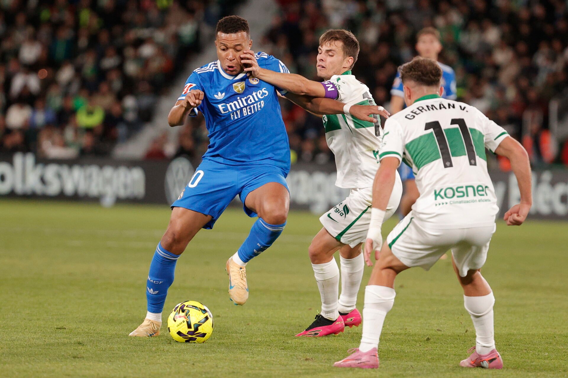 Στον αγώνα με την Έλτσε ο Αλόνσο άλλαξε σχήματα και παίκτες σε μια προσπάθεια να διαφοροποιηθεί η εικόνα της ομάδας. Δεν πέτυχε πολλά. Αντ’ αυτού στο 53′ η Έλτσε προηγήθηκε (Φέμπας), η Ρεάλ είχε δοκάρι με τον Βίνι και ισοφάρισε στο 78′ ο Χάουσεν, αλλά ο Αλβάρο Ροντρίγκες με σουτ έξω από την περιοχή έβαλε και πάλι μπροστά στο σκορ τους γηπεδούχους. Στο 87′ ισοφάρισε ο Μπέλιγχαμ, ενώ στο 90+4′ ο Φραν Γκαρθία δεν κατάφερε να σπρώξει την μπάλα στα δίχτυα για να δώσει την νίκη στους Μαδριλένους που στο 90+7′ απέκτησαν αριθμητικό πλεονέκτημα όταν ο Τρουστ τράβηξε τον Εμπαπέ από τη φανέλα και δέχτηκε κίτρινη κάρτα που ήταν η δεύτερη.