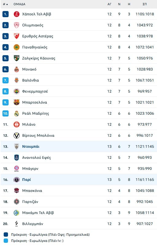 Ο Μακίνλεϊ Ράιτ (24 πόντοι με 2/3 τρίποντα, 5 ριμπάουτ και 4 ασίστ) με τον Φίλιπ Πετρούσεφ (19 πόντοι, 5 ριμπάουντ, 2 ασίστ) οι καλύτεροι της Ντουμπάι με τον Γουίλις να ξεχωρίζει για την Παρί με 22 πόντους (4/5 τρίποντα), 7 ριμπάουντ και 1 ασίστ. Κόντρα στην μαγεία του αγώνα ο Χίφι που δεν έχει συνέλθει από τις ενοχλήσεις στη μέση που τον κράτησαν εκτός στον αγώνα με τον Ολυμπιακό. Δεν δικαιολογείται αλλιώς η επίδοσή του με μόλις 13 πόντους (2/8 τρίποντα), ένα ριμπάουντ και μια ασίστ. Χαμηλά στα τρίποντα και ο Ρόμπινσον, από 7/10 που είχε με τους «ερυθρόλευκους»… προσγειώθηκε στο ένα στις έξι προσπάθειες.