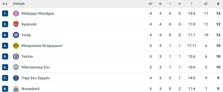 22:00 Άρσεναλ – Μπάγεν Μονάχου (CS3)