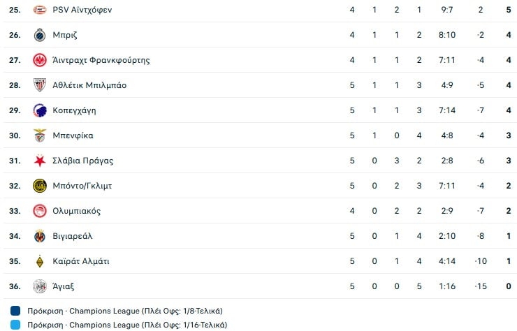 Η Κοπεγχάγη πήρε τρεις πολύτιμους βαθμούς στην προσπάθεια που κάνει να βρεθεί στις θέσεις των μπαράζ (9η-24η), αλλά προς το παρόν παραμένει σε θέση αποκλεισμού. Η Καϊράτ Αλμάτι ήταν ένας προσιτός αντίπαλος. Προηγήθηκε 3-0 και μέχρι το 80′ θεωρούσε ότι έχει την νίκη στα χέρια της. Δύο όμως γκολ των φιλοξενούμενων έκαναν ντέρμπι το ματς και χρειάστηκε μια επέμβαση του Κοτάρσκι στις καθυστερήσεις για να κρατήσει την νίκη (3-2). Με τον τρόπο αυτό… ισοφάρισε το λάθος που έκανε στο πρώτο γκολ των αντιπάλων του.
