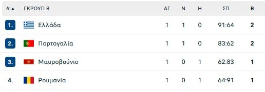 Επόμενο ματς στην Πορτογαλία την Κυριακή (ώρα 19:00). Οι επόμενοι αντίπαλοί μας δεν μπόρεσαν να αντισταθούν στους Μαυροβούνιους που κέρδισαν 83-62 εκτός έδρας.