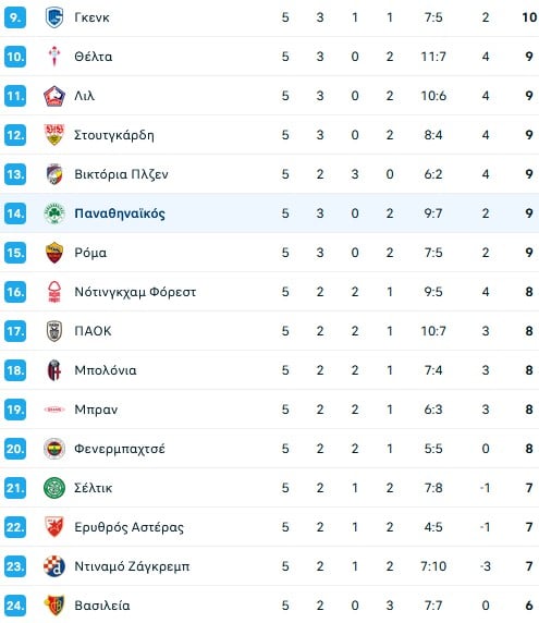 Παναθηναϊκός (Ράφα Μπενίτεθ): Ντραγκόφσκι, Τουμπά, Ίνγκασον, Πάλμερ-Μπράουν, Καλάμπρια (80′ Κώτσιρας), Τσέριν, Μπακασέτας (85′ Μλαντένοβιτς), Ζαρουρί, Τζούρισιτς, Τετέ (65′ Τσιριβέγια), Σφιντέρσκι (65′ Πάντοβιτς).