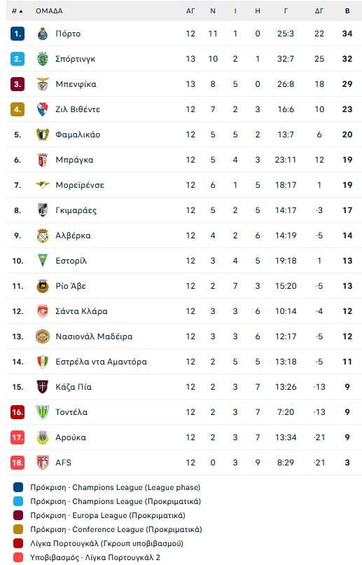 Κερδισμένη από την ισοπαλία του ντέρμπι της Λισαβόνας η Πόρτο που αποσπάστηκε δύο βαθμούς από την Σπόρτινγκ και πέντε από την Μπενφίκα.
