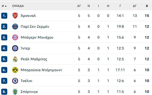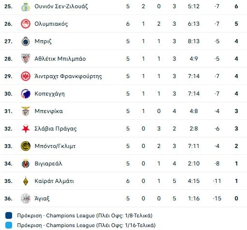 Θέσεις 1-8: Απευθείας πρόκριση στους «16»