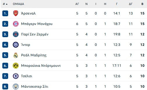 Τώρα η Μπάγερν έχει εξασφαλίσει την πρόκρισή της στην επόμενη φάση, έφθασε στην κορυφή την Άρσεναλ στους 15 βαθμούς κι αποσπάστηκε στο «+3» από Παρί, Ίντερ και Ρεάλ που φυσικά έχουν αγώνα λιγότερο.