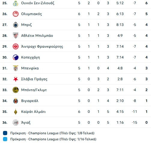 Θέσεις 1-8: Απευθείας πρόκριση στους «16»