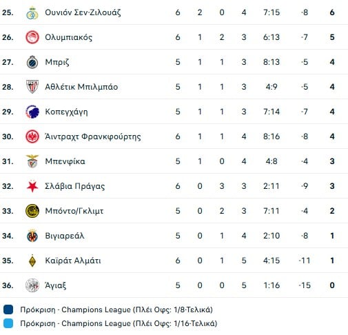 Θέσεις 1-8: Απευθείας πρόκριση στους «16»