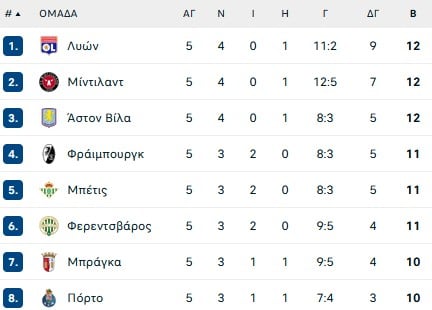 Θέσεις 1-8: Απευθείας πρόκριση στους «16»