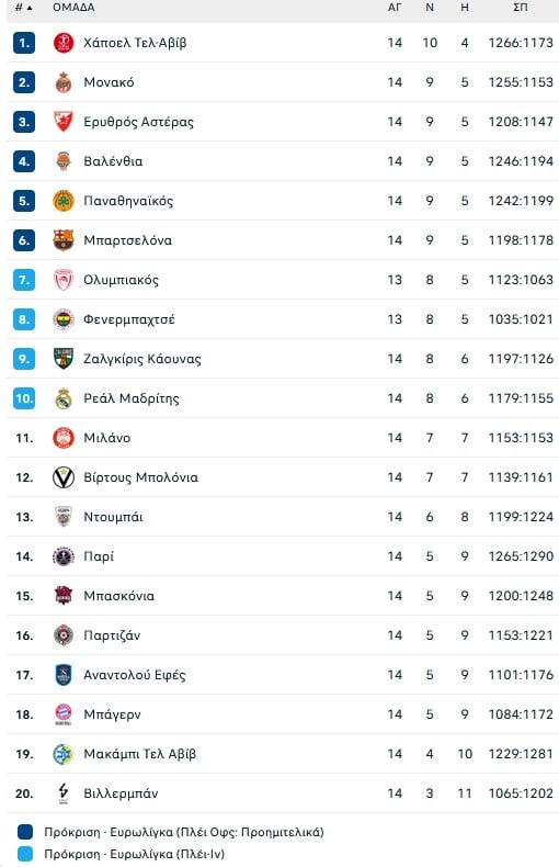 21:30 Βίρτους Μπολόνια – Χάποελ Τελ Αβίβ (NS Start)