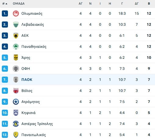Θέσεις 1-4: Απευθείας πρόκριση