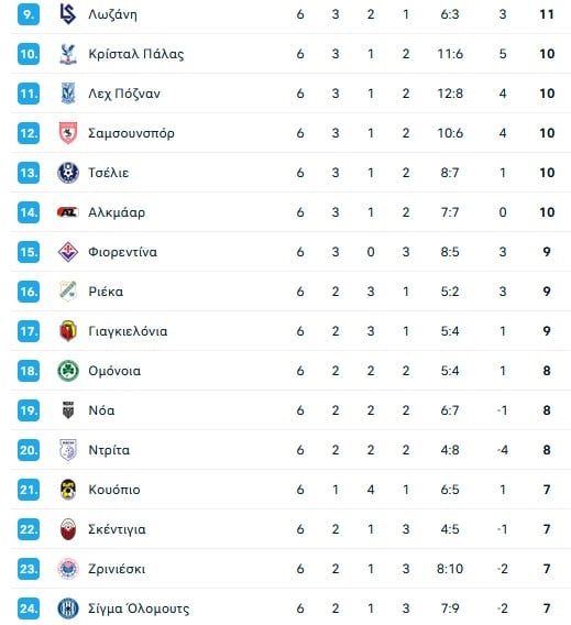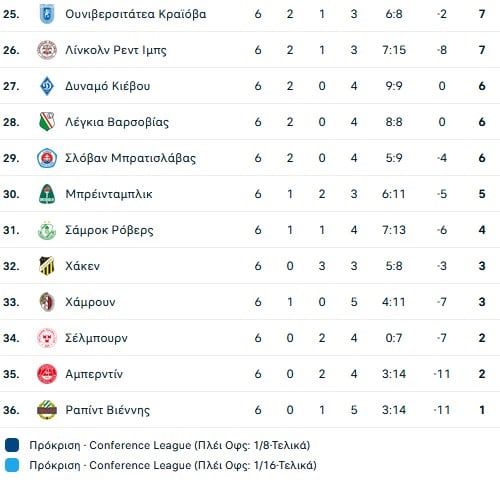- Στις 19 και 16 Φεβρουαρίου γίνονται τα μπαράζ. Από εκεί θα μάθει και την αντίπαλό της. Θα είναι κάποια από τις Τσέλιε (13η), φετινή της γνώριμη, η Αλκμάαρ (14η) από την Ολλανδία, η Νόα (19η) από την Αρμενία που την έχει αντιμετωπίσει παλαιότερα και η Ντρίτα (20η) από το Κόσοβο.