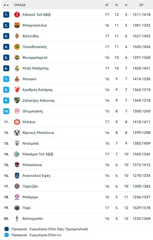 Ο Ολυμπιακός για πρώτη φορά στην πρόσφατη ιστορία του βρίσκεται εκτός πρώτης δεκάδας στην Euroleague μετά από 16 αγώνες. Μπορεί να βρίσκεται οριακά εκτός (είναι 11ος), να έχει αγώνα λιγότερο (με την Φενέρ στο ΣΕΦ που αναβλήθηκε λόγω βροχής), αλλά πέρα από τις νίκες προβληματίζει η εικόνα που βγάζει στο παρκέ.