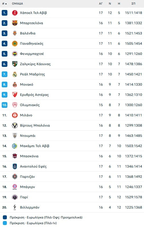19:00 Παρτίζαν – Μακάμπι Τελ Αβίβ