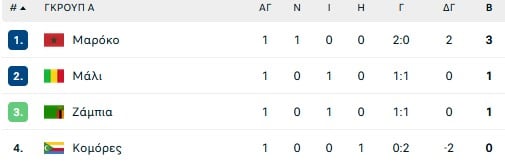 Δευτέρα 22 Δεκεμβρίου 2025, Καζαμπλάνκα: Μάλι – Ζάμπια 1-1