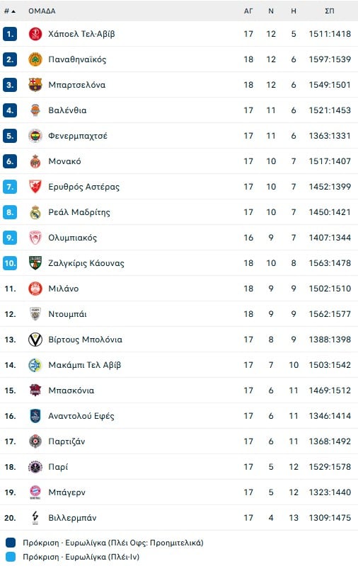 Τώρα ο Παναθηναϊκός βρίσκεται στο… κατόπι της Χάποελ με 12/6 σε νίκες/ήττες, υποχρέωσε την Ζάλγκιρις να πέσει στο 10/8, ενώ ετοιμάζεται να κάνει ποδαρικό στη νέα χρονιά (2/1) στον εντός έδρας αγώνα με τον Ολυμπιακό. Ένα ματς στο οποίο η νίκη μετρά και για τις δύο ομάδες, όχι μόνο για βαθμολογικούς λόγους.