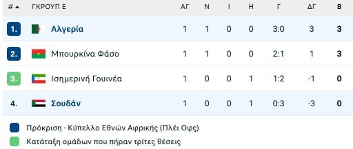 Η πρώτη αγωνιστική του Κόπα Άφρικα έκλεισε με την νίκη της Αλγερίας με 3-0 επί του Σουδάν. Μια νίκη που πανηγυρίστηκε ιδιαίτερα αφού ήταν η πρώτη στη διοργάνωση μετά από 2.350 μέρες, από την νίκη της δηλαδή στο 3-0 επί της Σενεγάλης στον τελικό του 2019 (19 Ιουλίου).