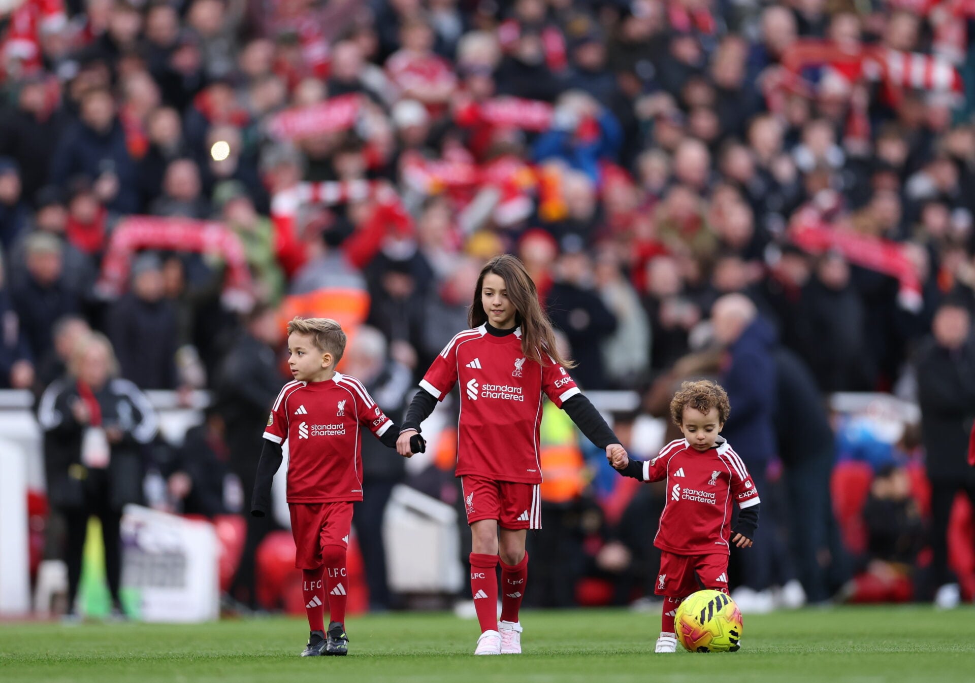 Diogo Jota’s children accompany Liverpool skipper Virgil van Dijk on the pitch at Anfield ahead of kick-off against Wolves ❤️ pic.twitter.com/JADygO5uxS