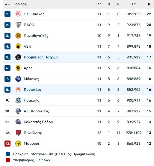 Προμηθέας (Σεγκούρα): Χάμοντς 18 (3/8 δίποντα, 3/8 τρίποντα, 3/4 βολές, 7 ριμπάουντ), Κόουλμαν 10 (2 τρίποντα, 10 ριμπάουντ), Μπαζίνας 5 (4 ασίστ), Γκρέι 18 (6/10 δίποντα, 0/3 τρίποντα, 6/7 βολές), Μακούρα 8 (1/6 τρίποντα, 5 ριμπάουντ, 4 ασίστ), Χάρις 25 (3/8 δίποντα, 5/10 τρίποντα, 4/4 βολές, 6 ριμπάουντ, 2 ασίστ), Πλώτας 4 (1/7 σουτ), Καπετάκης, Λάγιος 2, Καραγιαννίδης 2 (7 ριμπάουντ), Σταυρακόπουλος.