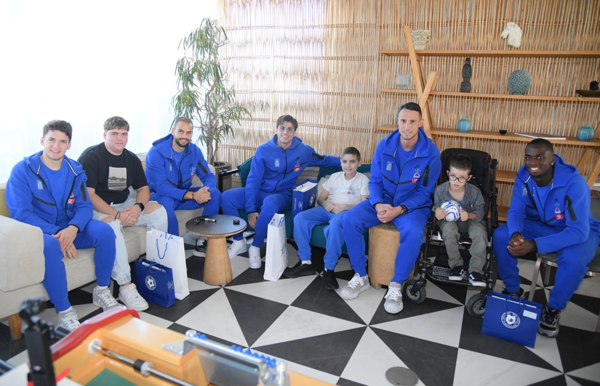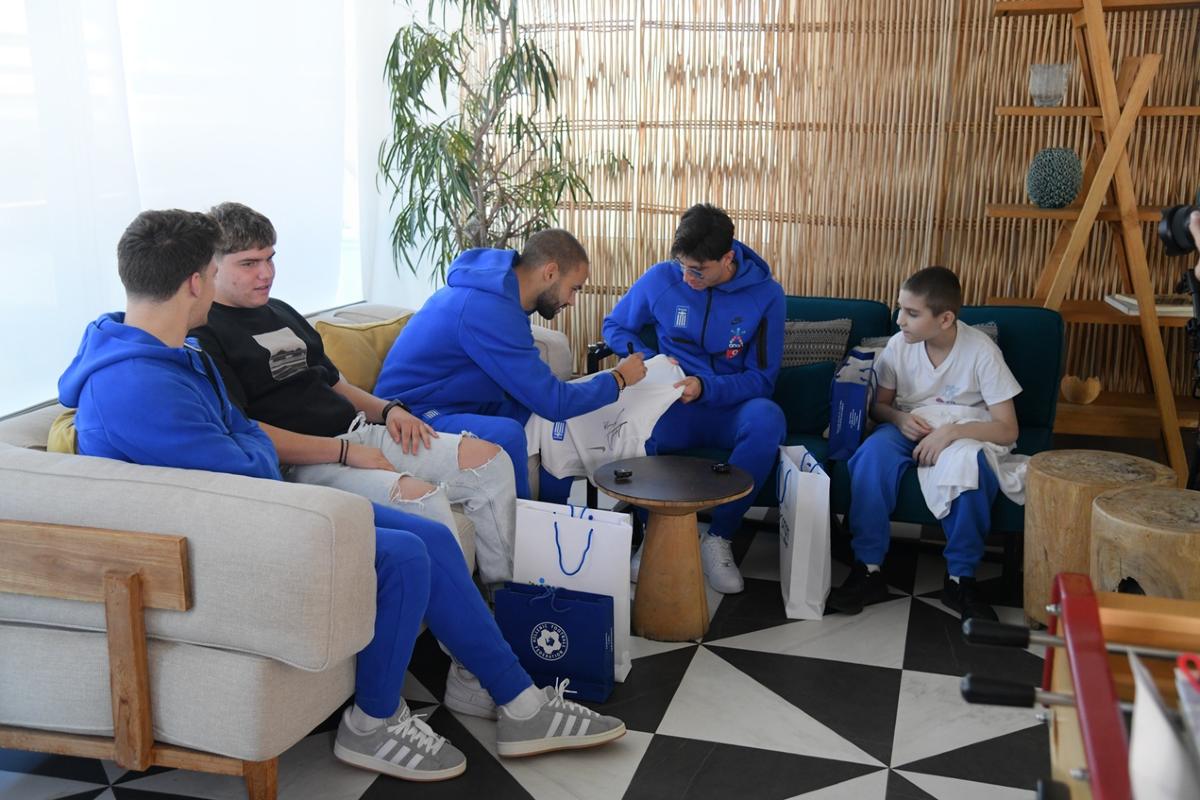 Οι διεθνείς γνωρίστηκαν με τα παιδιά, έβγαλαν φωτογραφίες μαζί τους και απάντησαν σε όλες τους τις ερωτήσεις, ενώ τους χάρισαν, ως αναμνηστικά δώρα, μία εμφάνιση της Εθνικής και ποδοσφαιρικές μπάλες.
