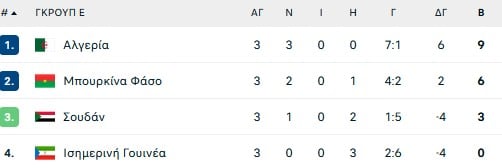 Οι τελικές βαθμολογίες των ομίλων