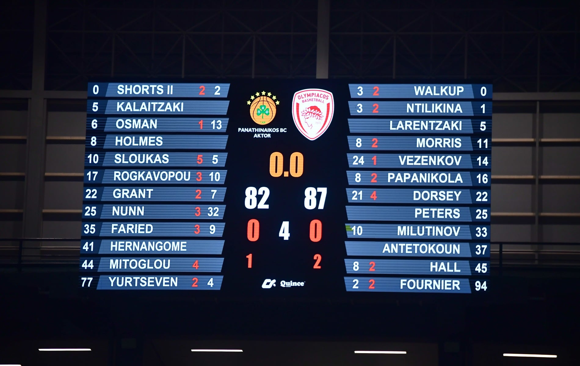 Ο Μόντε Μόρις έφερε τον Ολυμπιακό στο +8 , αλλά ο Νίκος Ρογκαβόπουλος ισοφάρισε για τον Παναθηναϊκό λίγο πριν από την ανάπαυλα σε 43-43.