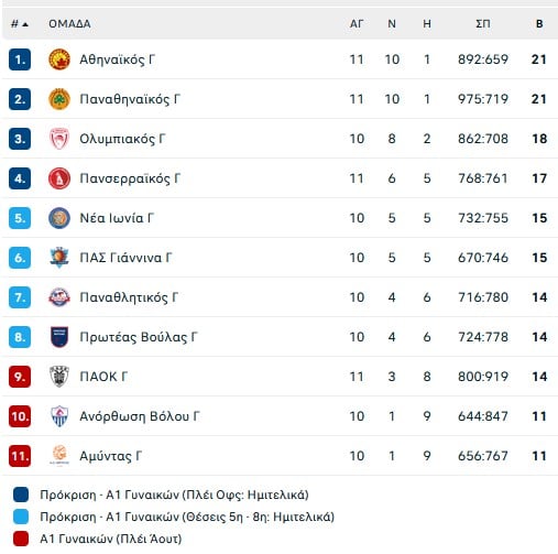 Αθηναϊκός (Στέλλα Καλτσίδου): Ράτζα 1 πόντος (0/1 δίποντα, 0/1 τρίοποντα,1/2 ελ. βολές), 1 ριμπάουντ, 1 ασίστ, Τσινέκε 6 πόντοι (3/5 δίποντα, 0/2 δίποντα), 1 λάθος, Σταμάτη 3 πόντοι (1/1 τρίποντα), 2 ριμπάουντ, 3 ασίστ, Παυλοπούλου 3πόντοι (0/3 δίποντα, 1/4 τρίποντα), 8 ριμπάουντ, 6 ασίστ, 2 λάθη, Λούκα 8 πόντοι (4/6 δίποντα, 0/1 τρίποντα, 1 ριμπάουντ, Τάντιτς 15 (5/5 δίποντα, 1/1 τρίποντα. 2/2 ελ. βολές), 7 ριμπάουντ, 1 ασίστ, 1 κόψιμο, 1 μπλοκ, 2 λάθη, Πρινς 12 πόντοι (4/14 δίποντα, 0/2 τρίποντα, 4/5 ελ. βολές), 13 ριμπάουντ, 2 ασίστ, 1 κόψιμο, 2 μπλοκ, 2 λάθη, Παρκς 13 (6/10 τρίποντα, 0/5 τρίποντα, 1/3 ελ. βολές), 5 ριμπάουντ, 2 ασίστ, 2 κοψίματα 2 μπλοκ, 2 λάθη, Ανίγκουε 5 ριμπάουντ, 1 κόψιμο, 2 λάθη, Χρίστοβα 15 πόντοι (3/5 δίποντα, 2/4 τρίποντα, 3/4 ελ. βολές), 3 ριμπάουντ, 1 λάθος.