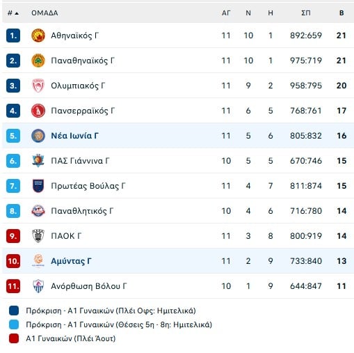 Ιωνία (Βελτσίστας): Δαμουλάκη 2, Βιντσιλαίου Στ. 2, Καραγιάννη, Βιντσιλαίου Α. 15(1), Γκριγκς 14(4), Τσιανάκα, Φουράκη, Μανίς 11, Κλαρκ 18(1), Στογιανόφσκα 11(3), Ευμορφοπούλου.