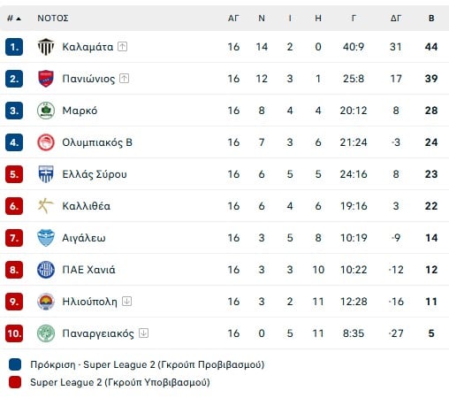 Η Καλαμάτα με την νίκη της, 2-0 τον Πανιώνιο, στο γήπεδο της Παραλίας έβαλε… υποθήκη ανόδου στην Super League. Ήδη έχει αποσπαστεί με πέντε βαθμούς από τους «κυανέρυθρους» και προελαύνει αήττητη (14 νίκες, 2 ισιοπαλίες) στον Νότιο Όμιλο της SL2.