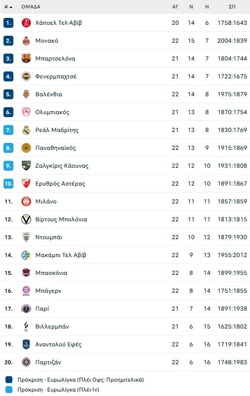 21:00 Βιλερμπάν – Χάποελ Τελ Αβίβ (NS Start)
