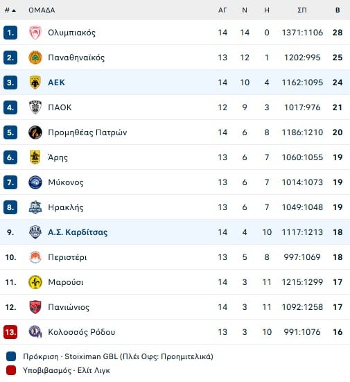 Η ΑΕΚ εγκαινίασε με νίκη την σειρά των αγώνων της με την Καρδίτσα. Νίκησε με 79-71 εκτός έδρας στον αγώνα της Basket Leauge, αλλά οι δύο ομάδες θα ξαναβρεθούν στο παρκέ την Τετάρτη (ώρα 19:00) στην Αθήνα για Ευρωπαϊκό αγώνα, αφού βρίσκονται στον ίδιο όμιλο του FIBA Champions League.