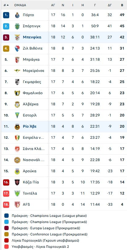 Μπενφίκα (Ζοζέ Μουρίνιο): Τρούμπιν, Νταλ, Οταμέντι, Αραούχο, Ντέντιτς, Μπαρέιρο, Αούρσνες, Σχέλντερουπ (62’ Καμπράλ), Σουντάκοβ (90+1’ Μανού Σίλβα), Πρεστιάννι (78’ Ρέγκο), Παυλίδης.