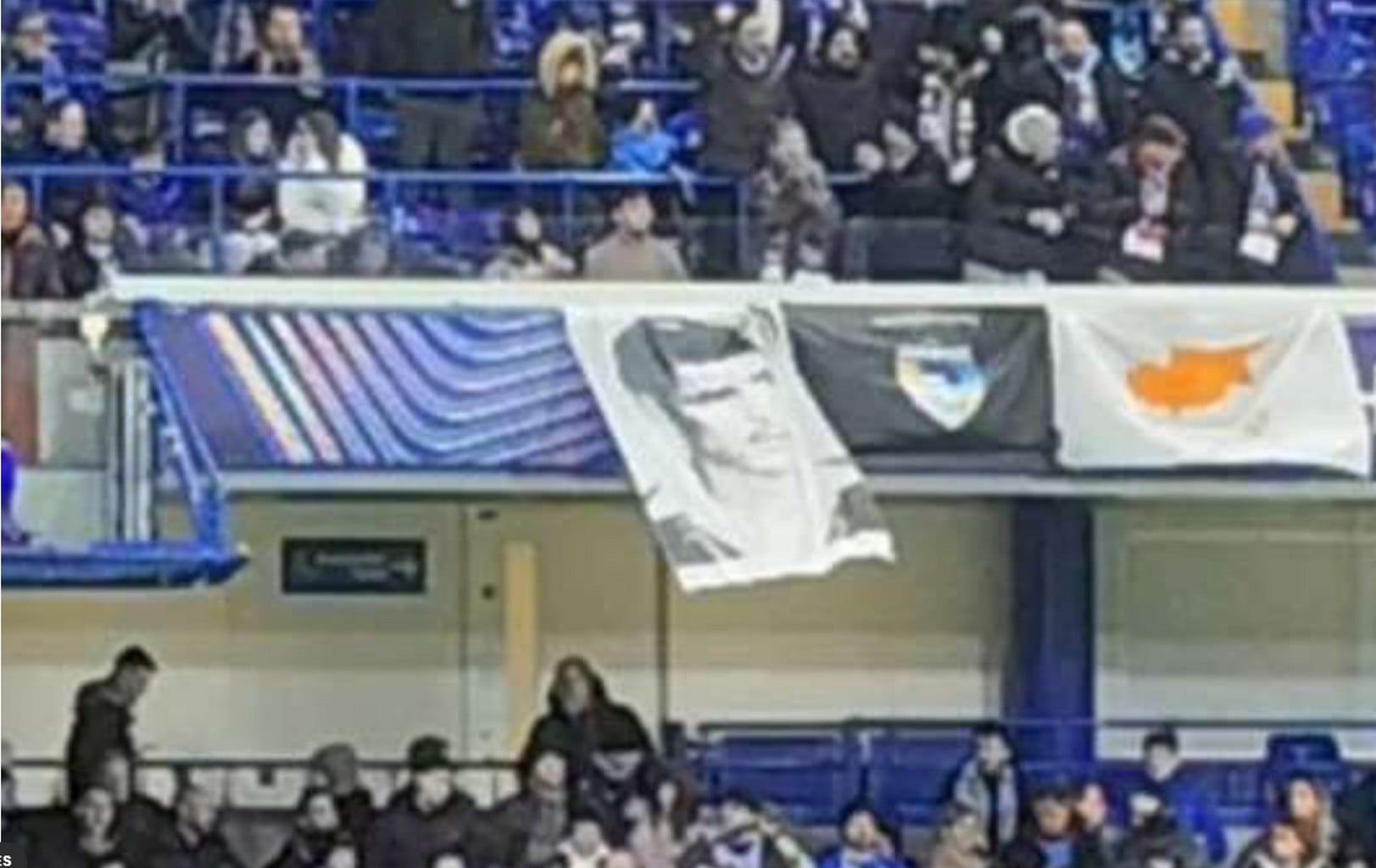 Προφανώς οι άνθρωποι της Τσέλσι, στο Λονδίνο, που υποδεχόταν την Πάφο για το Champions League το γνώριζαν. Έτσι μόλις οι Κύπριοι οπαδοί ανάρτησαν ένα τεράστιο πανό με τον ήρωα όπως αποτυπώνεται στο έμβλημα του συλλόγου άνθρωποι της ΟΥΕΦΑ αποφάσισαν να ζητήσουν την απομάκρυνσή του για να αρχίσει ο αγώνας.