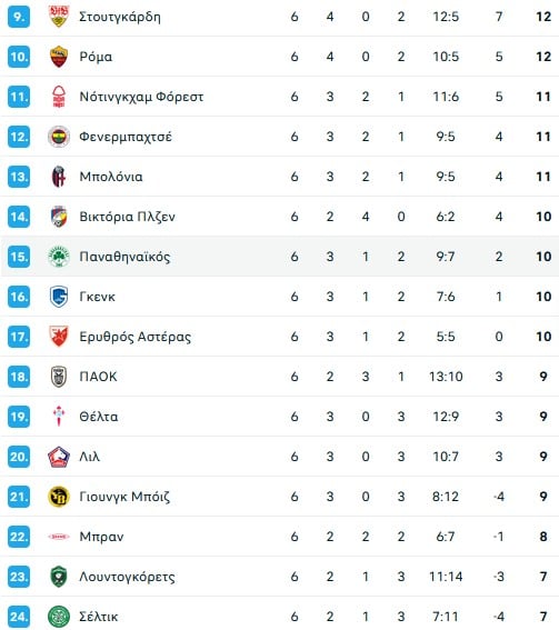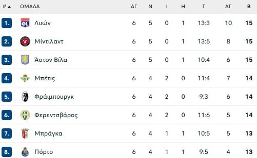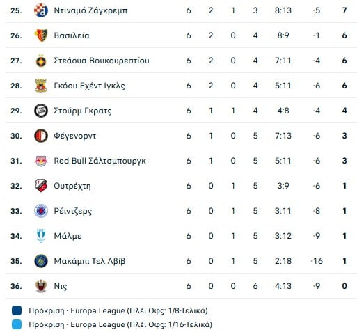 * Ματς με αντιπάλους της League Phase (Βαθμοί, Διαφορά τερμάτων, Καλύτερη επίθεση)