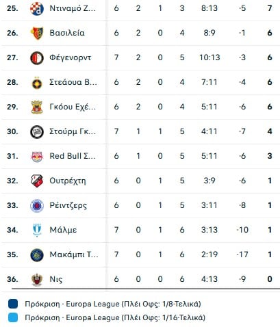 Θέσεις 1-8 απευθείας πρόκριση στους «16»