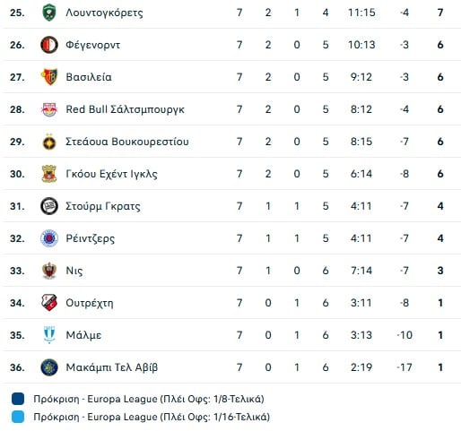 Ματς με αντιπάλους της League Phase (Βαθμοί, Διαφορά τερμάτων, Καλύτερη επίθεση)
