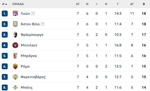 - Άστον Βίλα (2η) έχει εξασφαλίσει την πρόκριση στους 16. Αν η Λιόν δεν νικήσει τον ΠΑΟΚ μπορεί να κόψει πρώτη το νήμα.