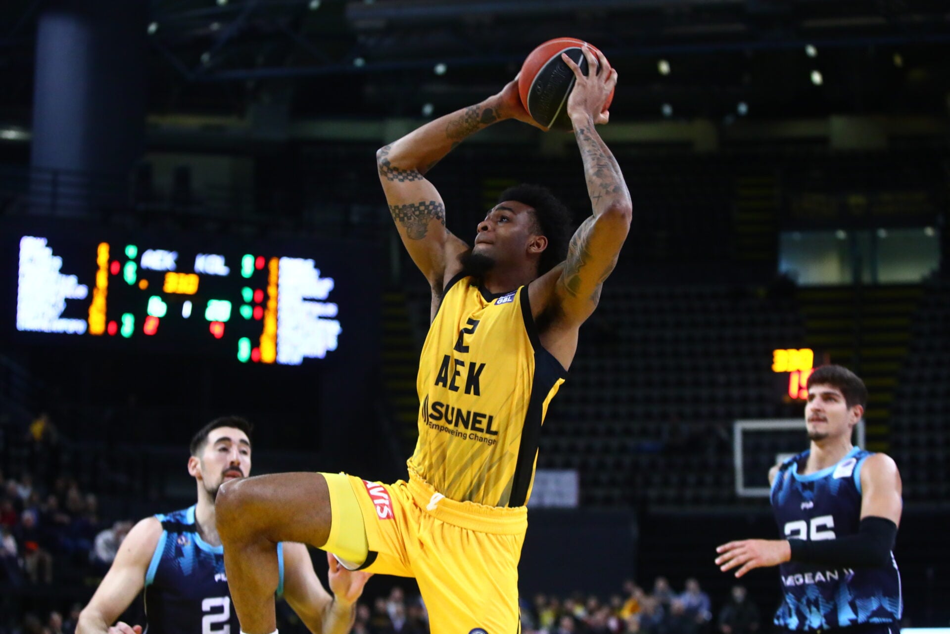 Η ΑΕΚ αισθάνθηκε για τελευταία φορά την… απειλή του Κολοσσού στο 34΄ (76-75). Κάπου εκεί με τρίποντα κι αιφνιδιασμούς με επιμέρους σκορ 15-2 έφθασαν την διαφορά στους 14 πόντους (91-77 στο 37’).