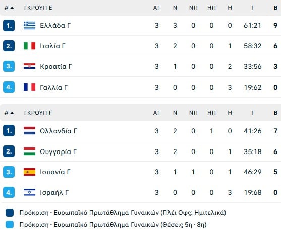 Οι τελικές βαθμολογίες στους δύο ομίλους