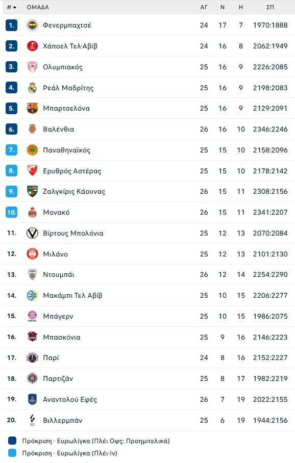 21:00 Χάποελ Τελ Αβίβ – Βαλένθια (NS2)